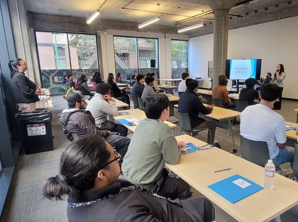After the panel, six professionals discussed their unique pathways to transportation. Michelle Robertson, Principal Marketing Representative at BART, humorously shared, “I studied English... Then I wrote a story about BART and climate change... BART slid into my DMs.”