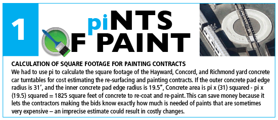 Have you ever thought about pi on BART? Not the lemon meringue or deep-dish apple kind -- the mathematical one. Turns out pi is used in lots of ways at BART.