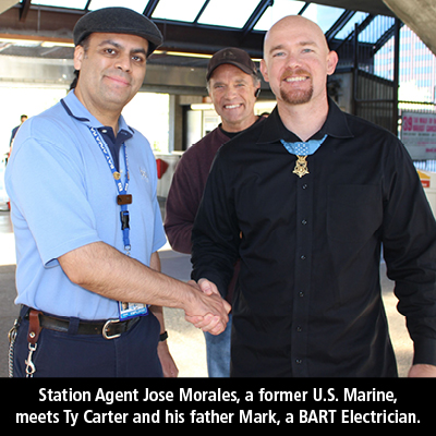 The President awarded the Medal of Honor, the nation’s highest military honor, to Ty in an August 2012 ceremony. Mark took time off from his job at BART to attend.